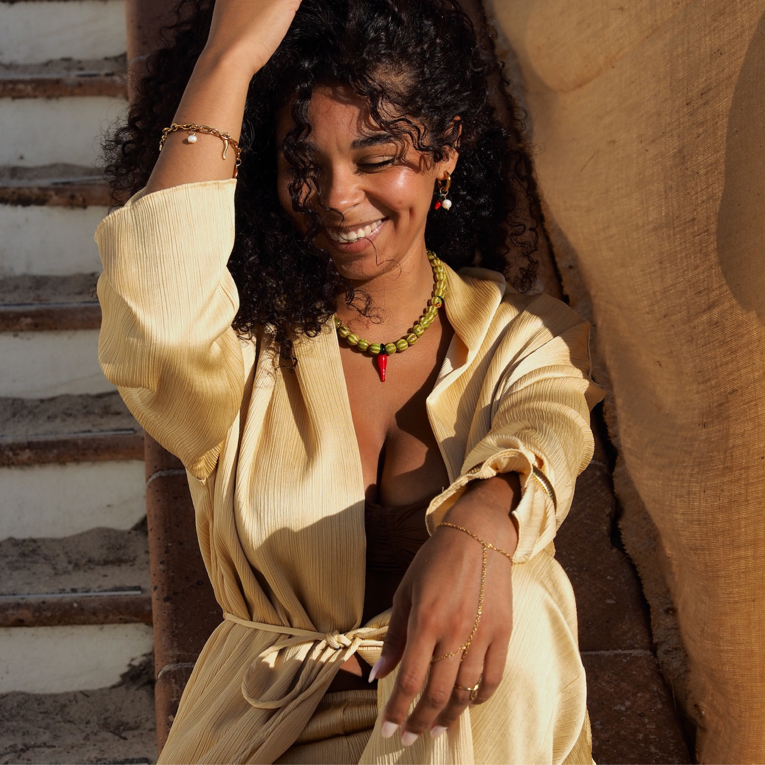 Bijoux pensés dans notre atelier, entre pièces assemblées à la main et sélections soignées.