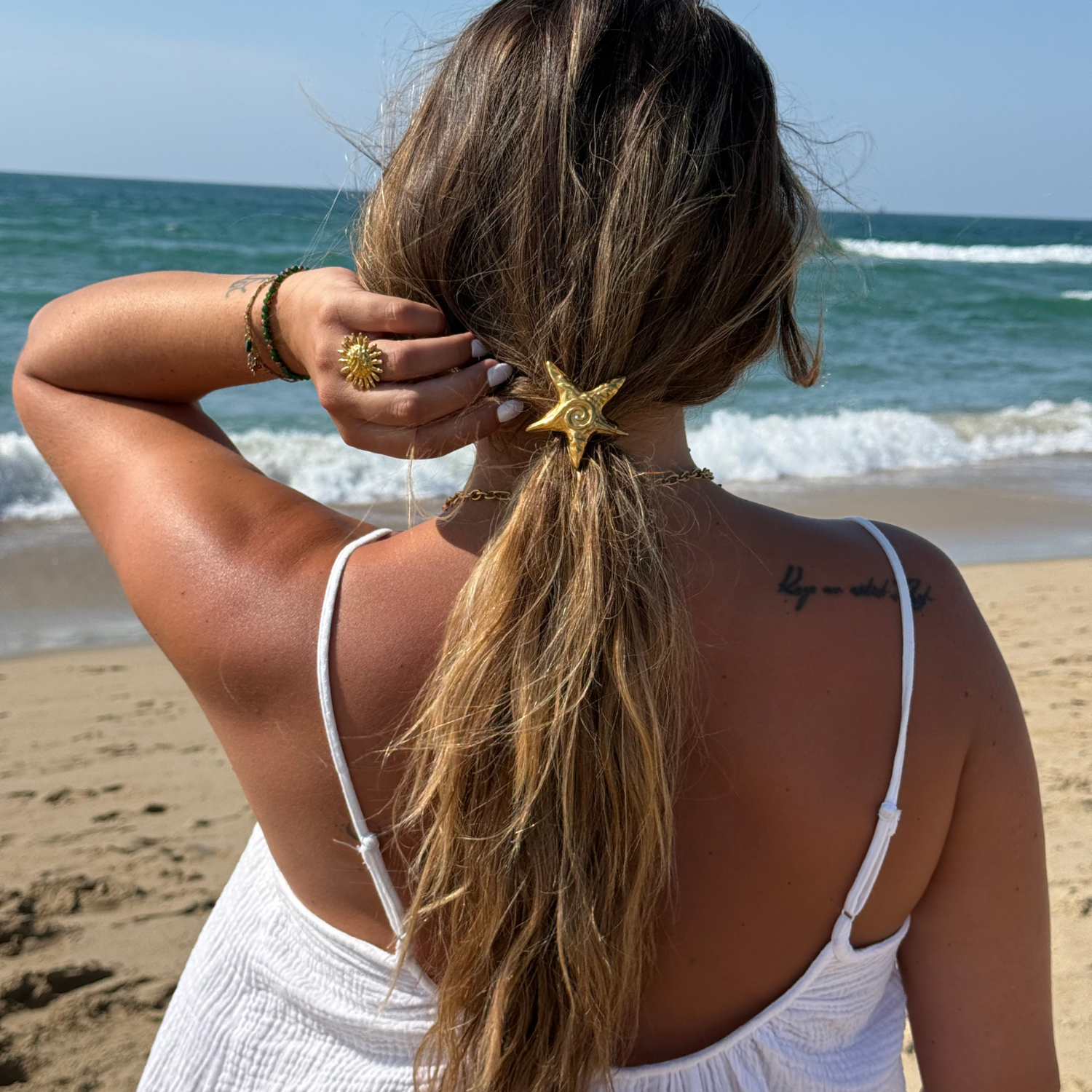 Accessoires cheveux - chouchous métalliques dorés étoile de mer