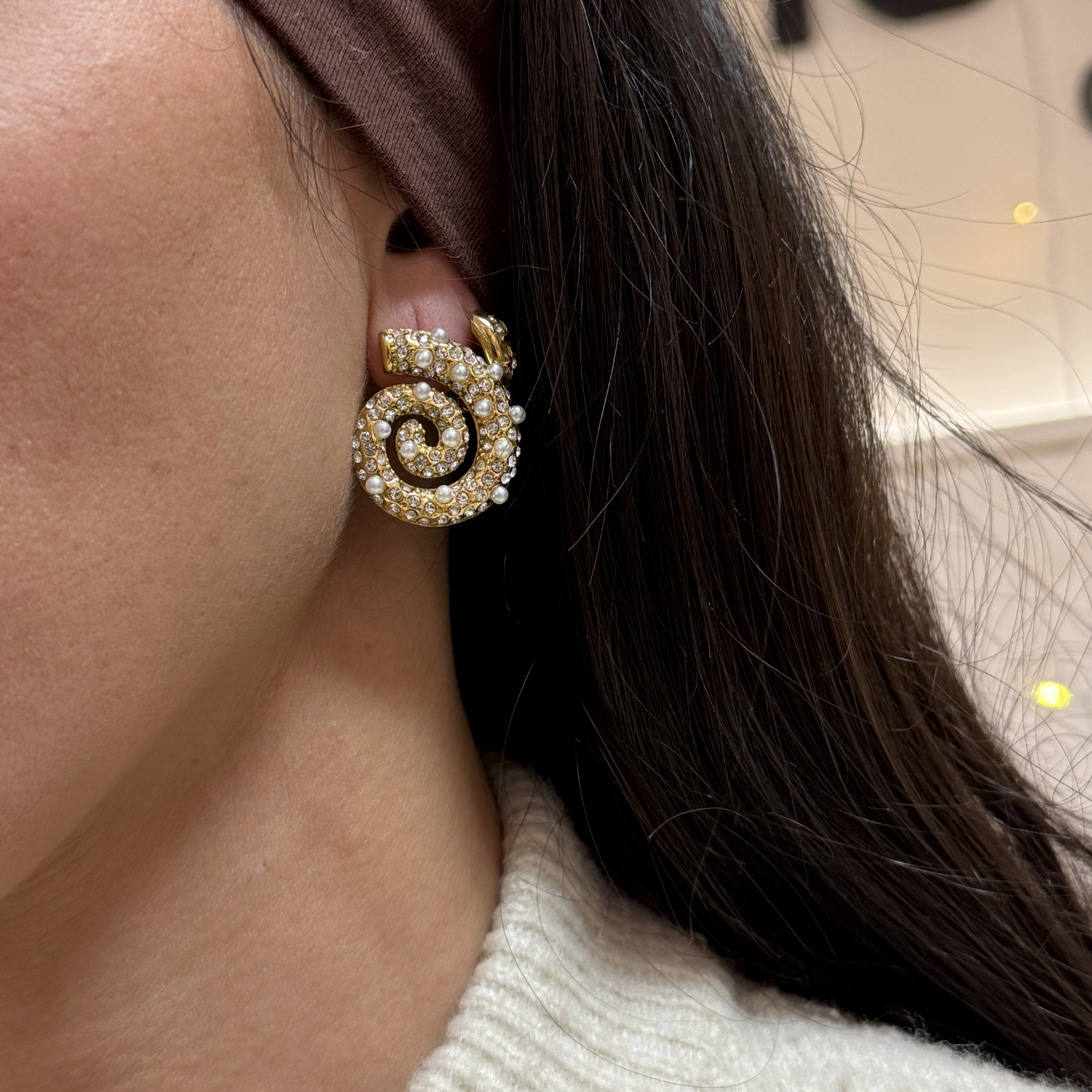 Les boucles d’oreilles Celeste en plaqué or 18 carats illuminent votre visage avec leur forme coquillage élégante, entièrement sertie de strass scintillants. Leur design glamour capte chaque reflet et apporte une touche lumineuse, parfaite pour les soirées comme pour sublimer une tenue plus sobre.