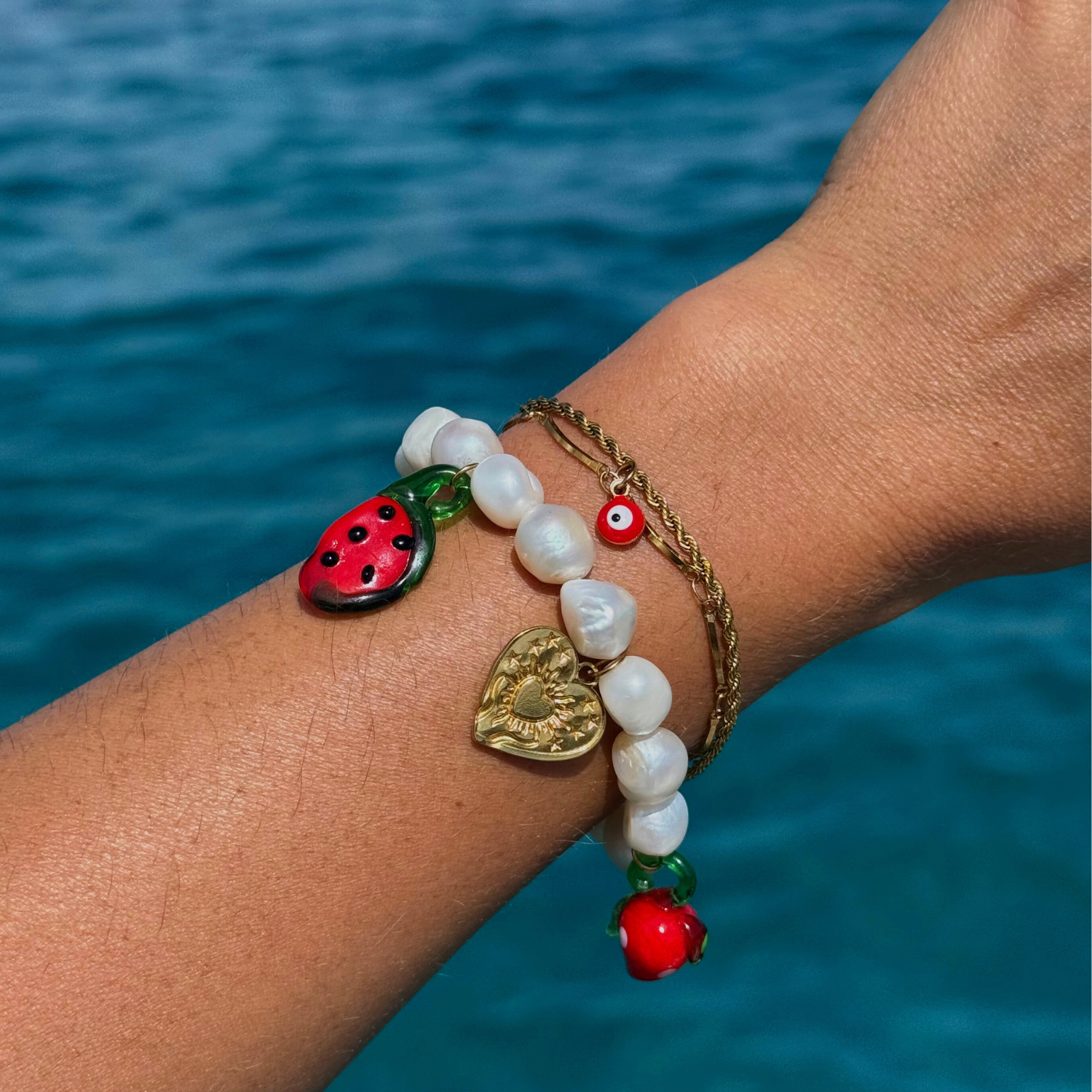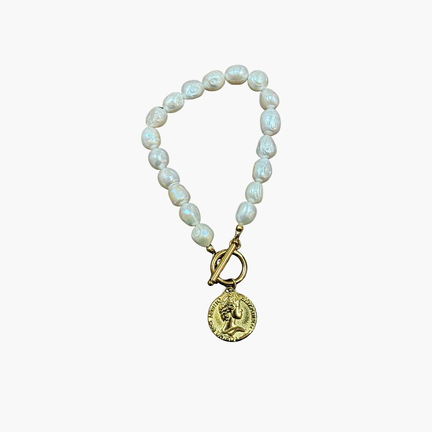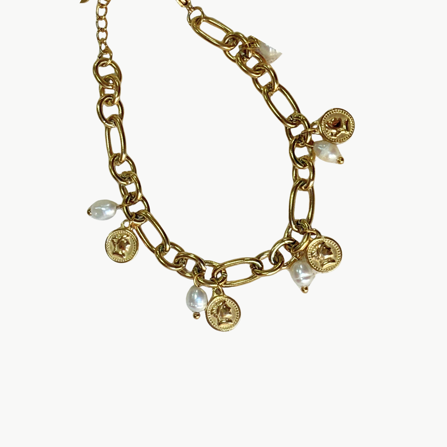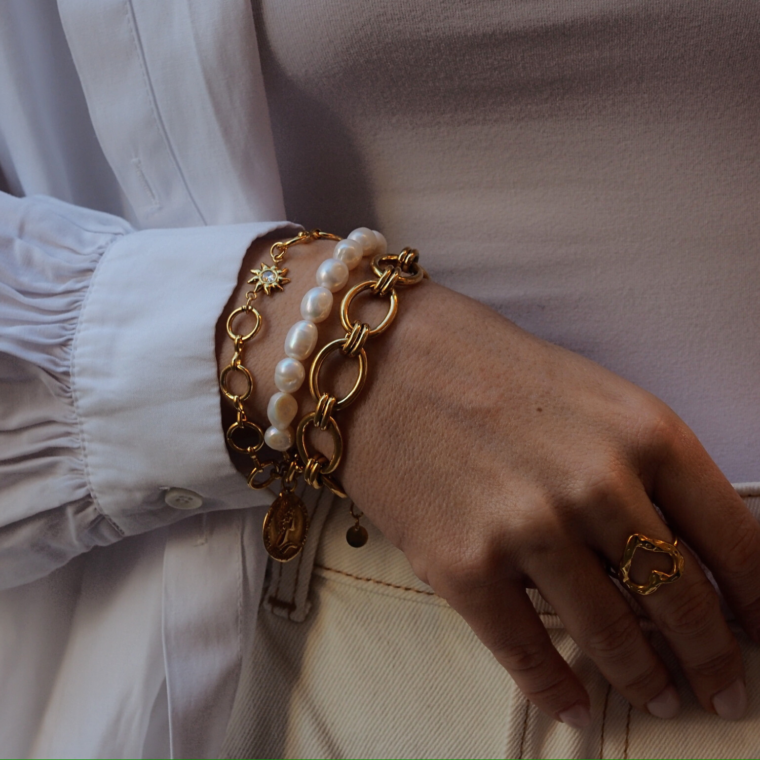 Liora - Bracelet chaîne médailles & perles d'au douce