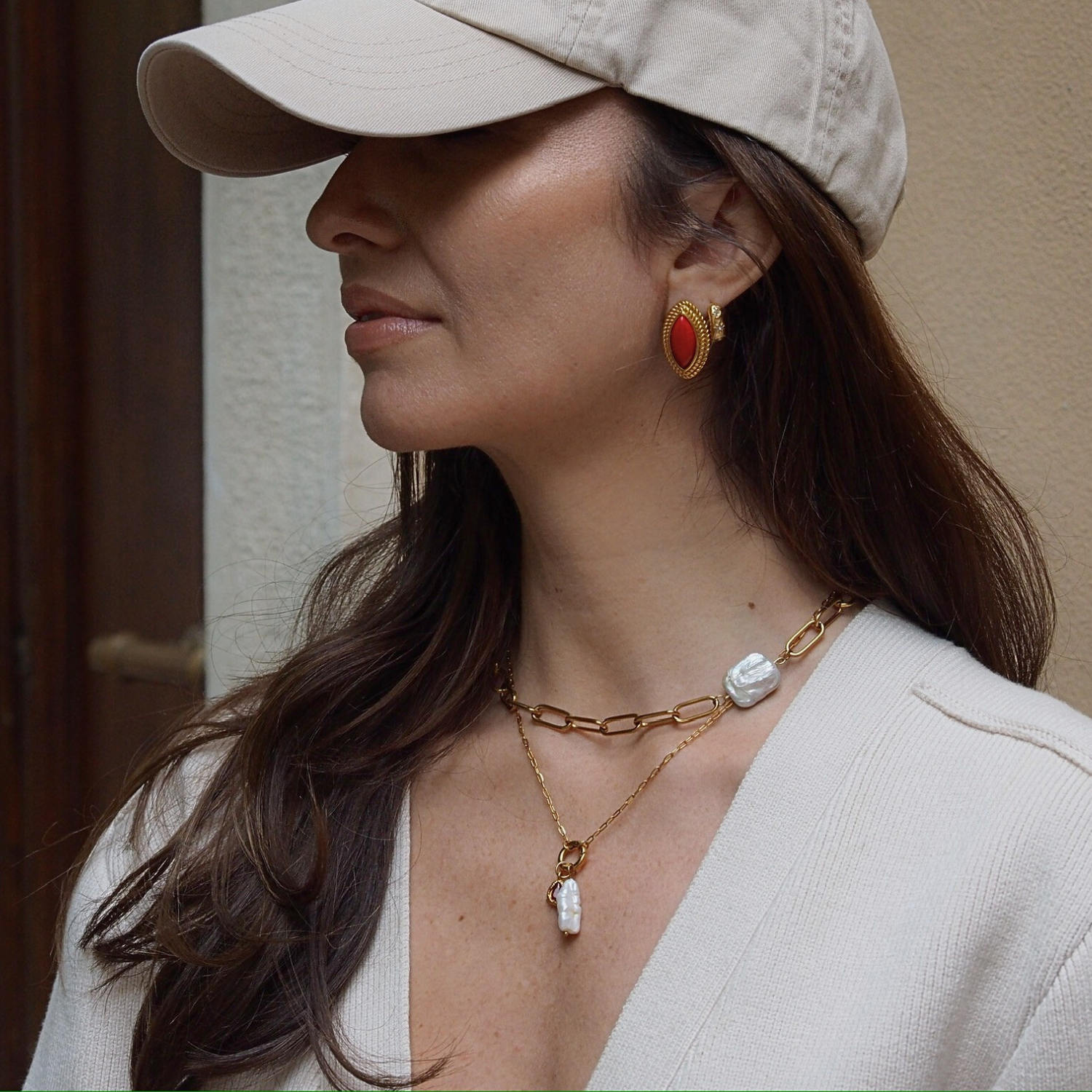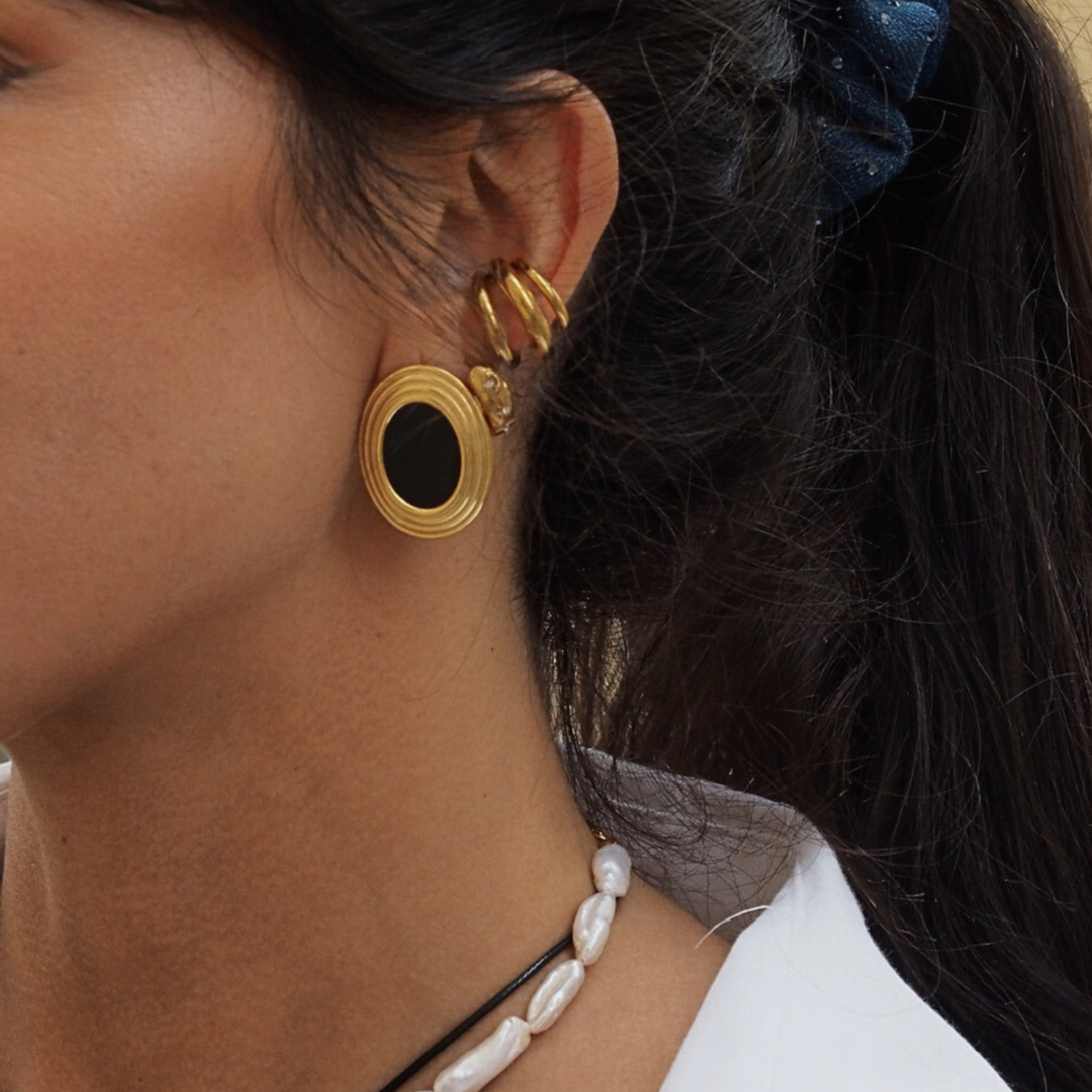 Harlow - Boucles d'oreilles ovales noires plaqué or 18 carats
