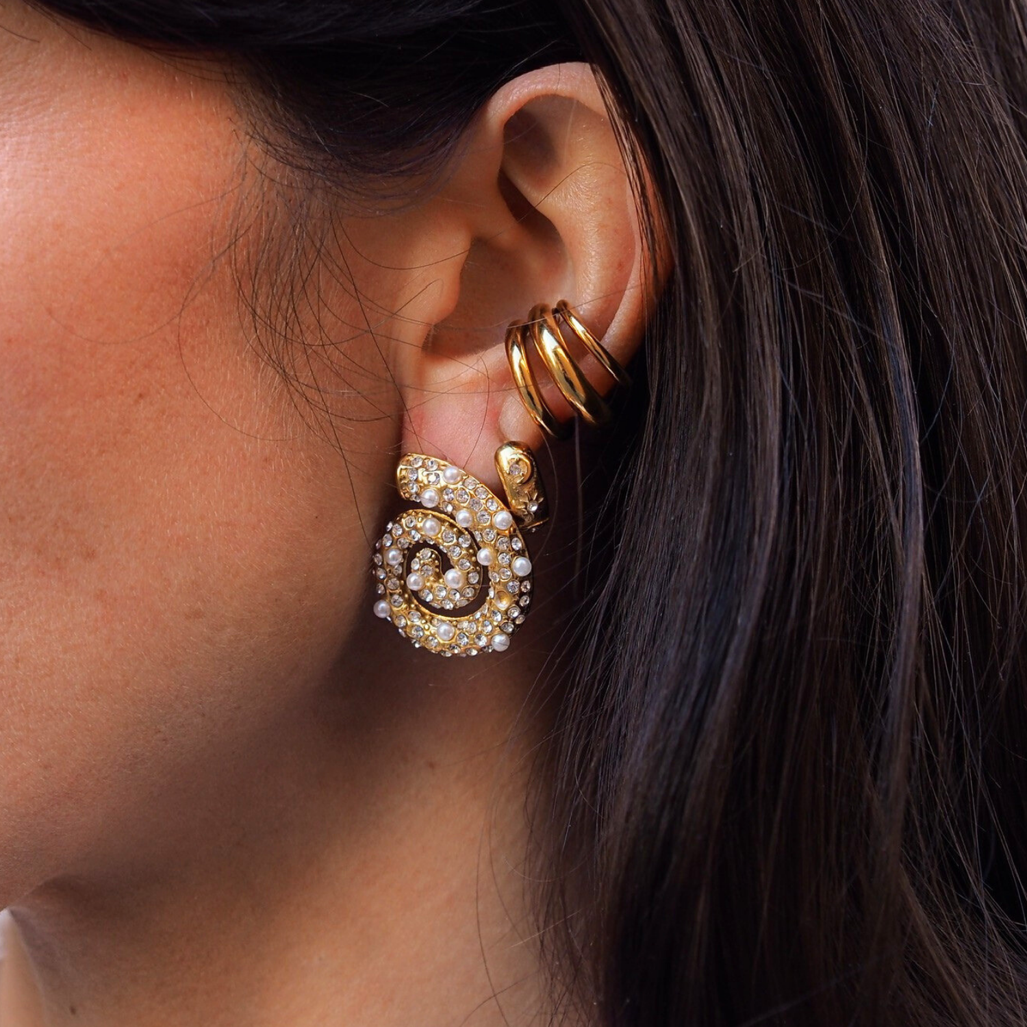 Celeste - Boucles d'oreilles coquillage strass plaqué or 18 carats