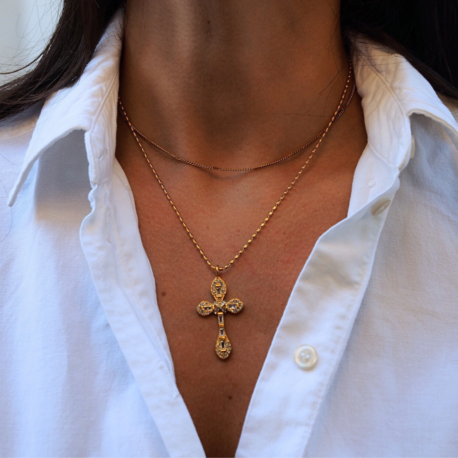 Mary - Collier pendentif croix plaqué or 18 carats