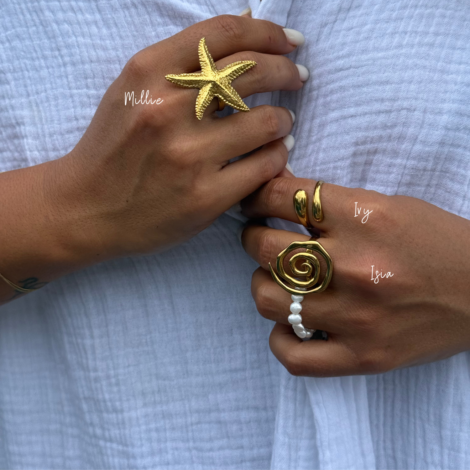 Bagues dorées ajustables ou fixes, pensées pour un usage quotidien. Des modèles simples, modernes et faciles à associer.