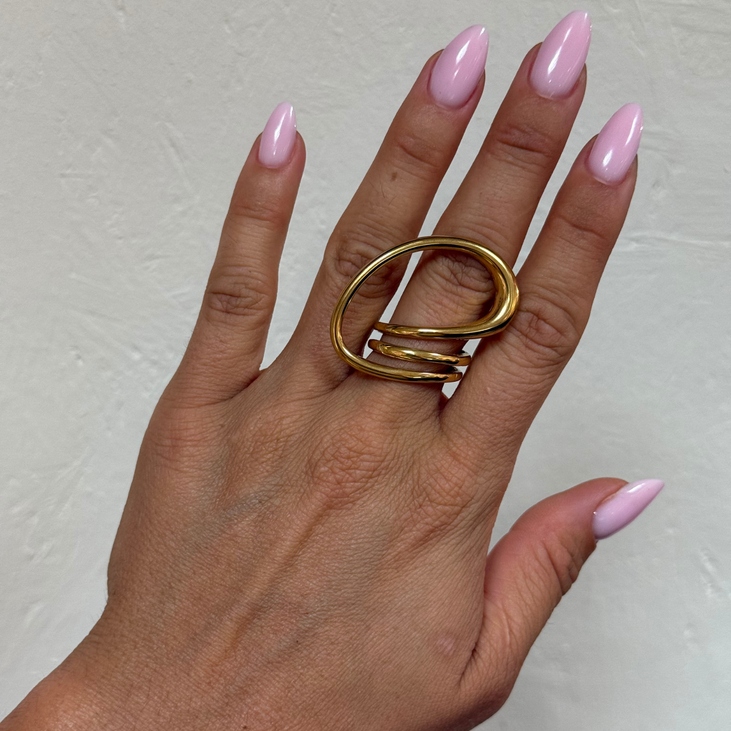 Bague statement en plaqué or 18 carats, aux courbes organiques. Une pièce audacieuse intemporelle.