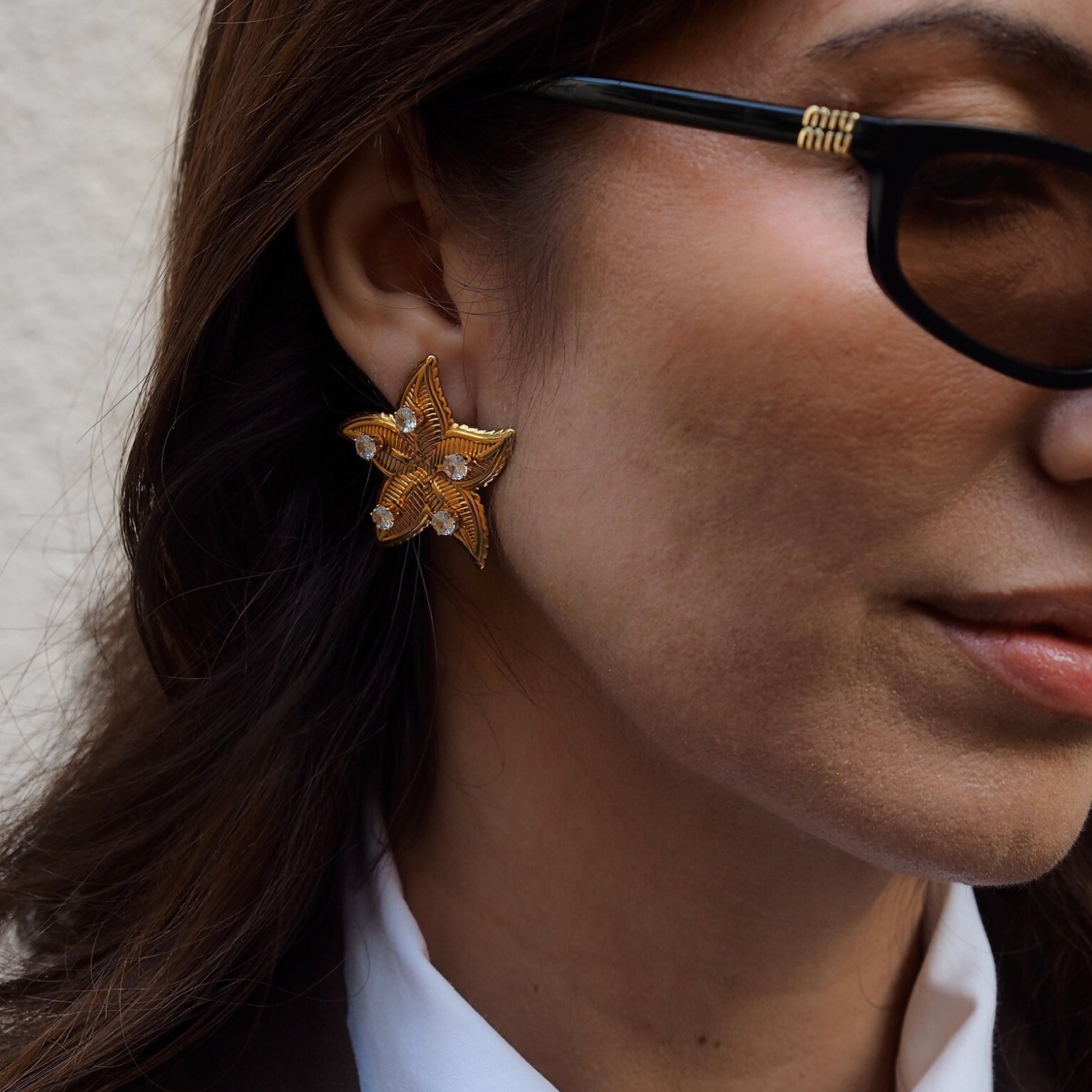 Luna - Boucles d'oreilles étoile de mer strass plaqué or 18 carats